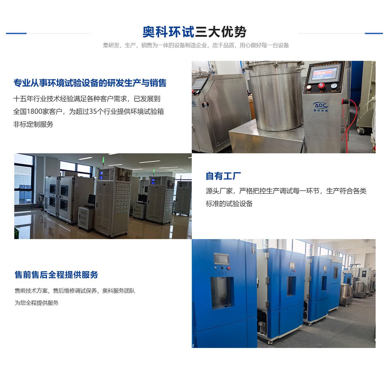 安徽奧科試驗設(shè)備有限公司隸屬于杭州奧科環(huán)境試驗設(shè)備有限公司直屬分公司,是一家從事各種試驗設(shè)備研發(fā)、生產(chǎn)與銷售一體的技術(shù)單位??偣緭碛袕姶蟮募夹g(shù)團隊及科學(xué)嚴謹?shù)纳a(chǎn)流程,鑄就了產(chǎn)品質(zhì)量。公司本著“以質(zhì)量求生存,以信譽求發(fā)展”的原則,為科研、軍事、航空、電子、汽車、石油、化工、醫(yī)療、通訊等各大院校和企事業(yè)單位提供符合GB、GJB、IEO、ISO、ASTM、MIL、DIN等標準的各類環(huán)境試驗設(shè)備,并可根據(jù)用戶的需求設(shè)計制造各類非標性設(shè)備。奧科奉行“進取求實嚴謹團結(jié)”的方針,不斷開拓創(chuàng)新,以技術(shù)為核心、視質(zhì)量為生命、奉用戶為上帝,竭誠為您提供高性價比的自控產(chǎn)品及無微不至的售后服務(wù)。